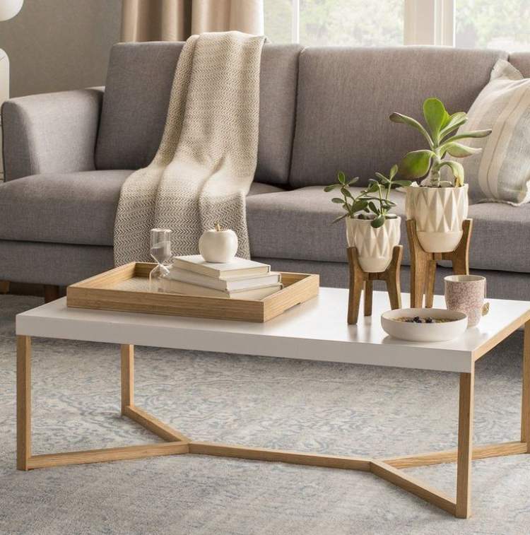 11. Meja Minimalis Ruang Tamu dengan Kaki Kayu
