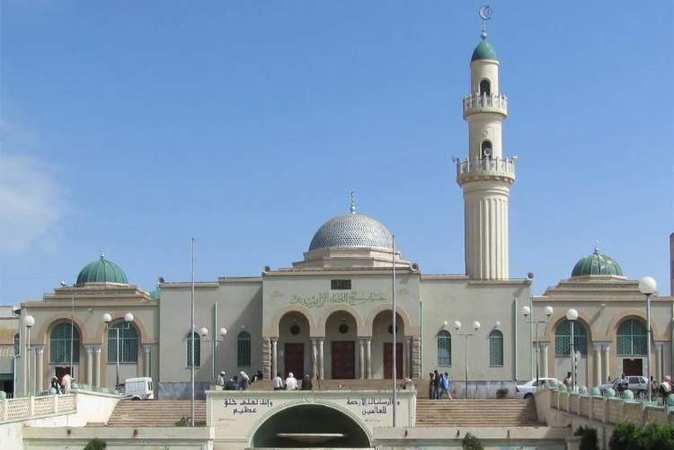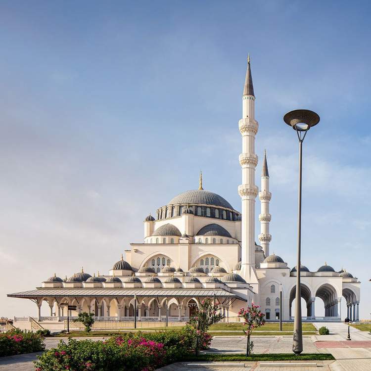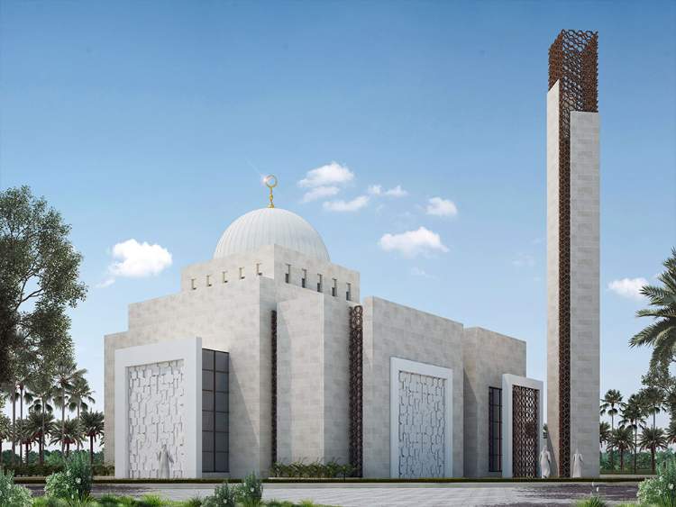 Menara berwarna putih tersebut merupakan desain yang sangat baik untuk dapat digunakan pada desain masjid. Kombinasikan dengan kubah berwarna perunggu atau emas sehingga membuatnya semakin elegan. Untuk dindingnya Anda bisa menggunakan warna krem agar lebih kalem.