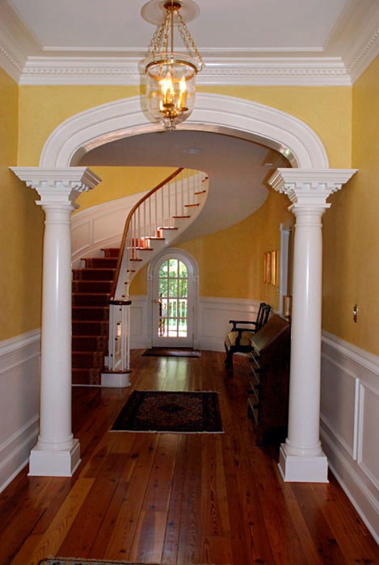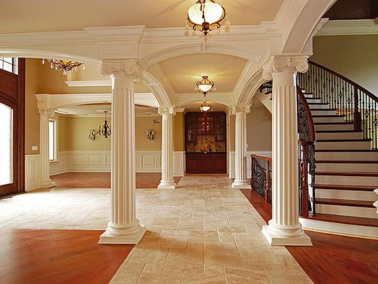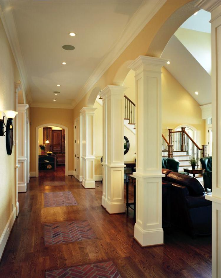 Bisa dibilang bahwa hallway merupakan area transisi, dan ada juga yang menjadikannya sebagai ruang tunggu. Nah, area ini bisa dibuat tampak indah dengan pilar-pilar putih glossy berbentuk klasik ala Roma dan Yunani, yang biasanya identik dengan ukiran.