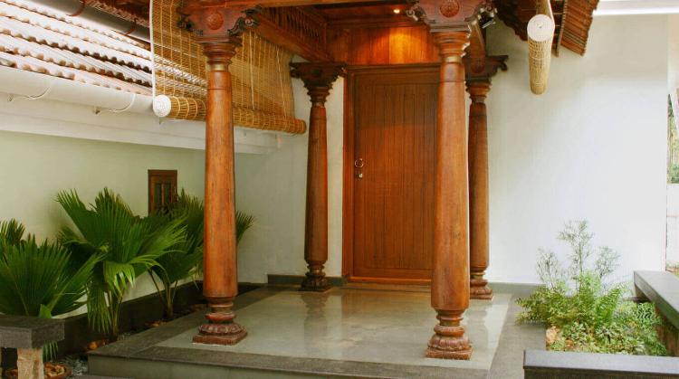 Memasukkan pilar kayu dengan aksen ukiran adalah ide yang tepat untuk membuat nuansa khas Jawa di area depan rumah. Model pilar ini juga menambah kesan hangat dan natural yang cocok dipadukan dengan pintu dan plafon kayu. Tambah lampu kuning di bagian plafon bisa semakin harmonis nih.
