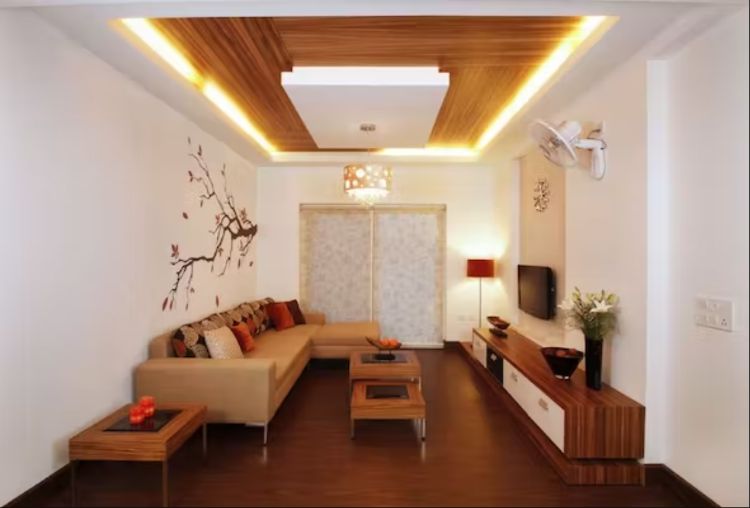 Model plafon gypsum ruang tamu ini akan terlihat lebih match dengan penerapan lantai kayu berwarna coklat tua. Pasalnya, perpaduan warna putih dan coklat yang cukup kontras akan menghasilkan tampilan lebih estetik dan kesan nyaman.
