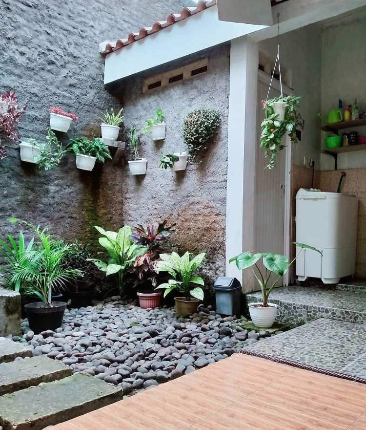 Berbagai jenis tanaman hias dengan aneka warna bunga menjadi pilihan yang menarik untuk hunian Anda. Selain dihiasi dengan tanaman rambat di bagian dinding, di sekeliling taman juga terdapat kolam ikan kecil yang membuat taman semakin cantik dan memberikan ketenangan.