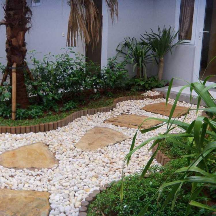Model taman dengan batu koral memang terlihat sangat menarik karena memiliki warna yang cukup kontras dengan tanaman hias di sekitarnya. Meskipun luas taman tidak seberapa, namun dengan penataan yang tepat akan membuatnya terlihat cantik dan menyejukkan mata.