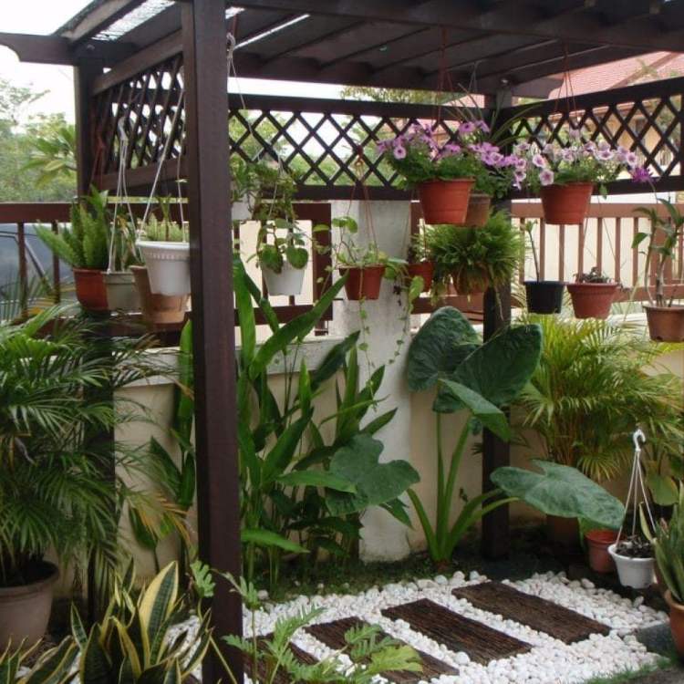 Jika Anda termasuk orang yang simple dan tidak punya banyak waktu merawat tanaman hias, maka ide taman yang satu ini sangat cocok untuk diterapkan. Hanya dengan beberapa tanaman hias di pot dan pot gantung, suasana di rumah akan terasa semakin sejuk.