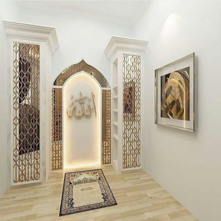 Pada umumnya mushola seperti ini disediakan untuk rumah berukuran minimalis dan pemiliknya membutuhkan ruangan khusus beribadah. Meskipun mempunyai rumah dengan ukuran kecil, namun ruangan mushola tetap bisa dibangun dan disediakan dengan ide dekorasi tersebut.