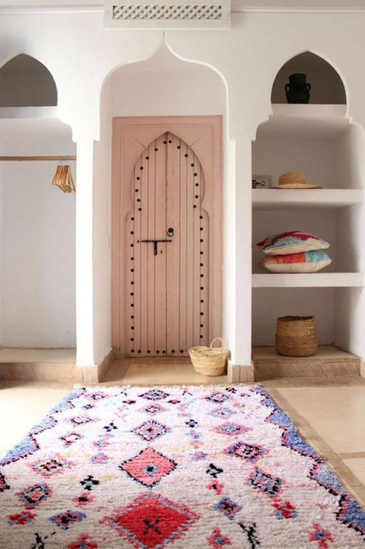 Desain mushola seperti pada gambar tersebut sangat cocok untuk Anda yang menyukai dekorasi ruangan unik. Ruangan mushola di atas dibuat dengan nuansa timur tengah dan terlihat unik karena dilengkapi pintu bewarna pink.