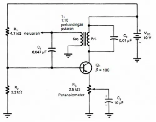 - Amplifier, yang mana komponen ini memiliki fungsi sebagai penguat daya. Dengan adanya amplifier, pemakaian rangkaian osilator bisa berfungsi secara maksimal.