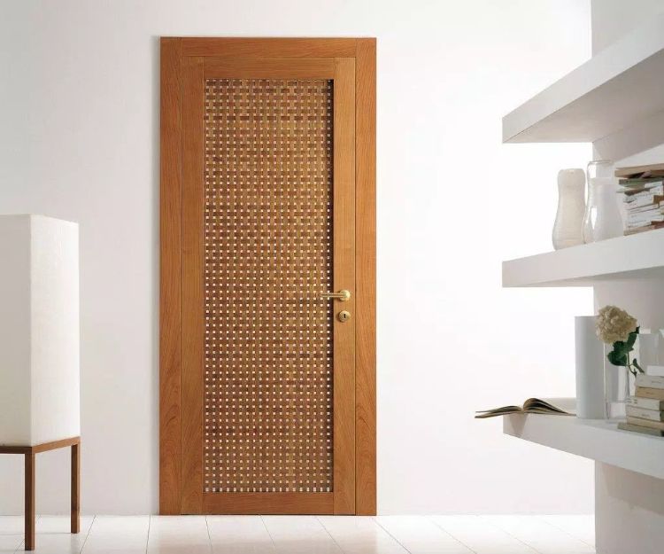 Contoh desain pintu terakhir adalah pintu kayu dengan motif anyaman di bagian tengahnya. Pintu seperti ini sangat cocok digunakan sebagai pintu kamar. Kamar akan terlihat lebih aesthetic atau mempunyai nilai seni tersendiri.