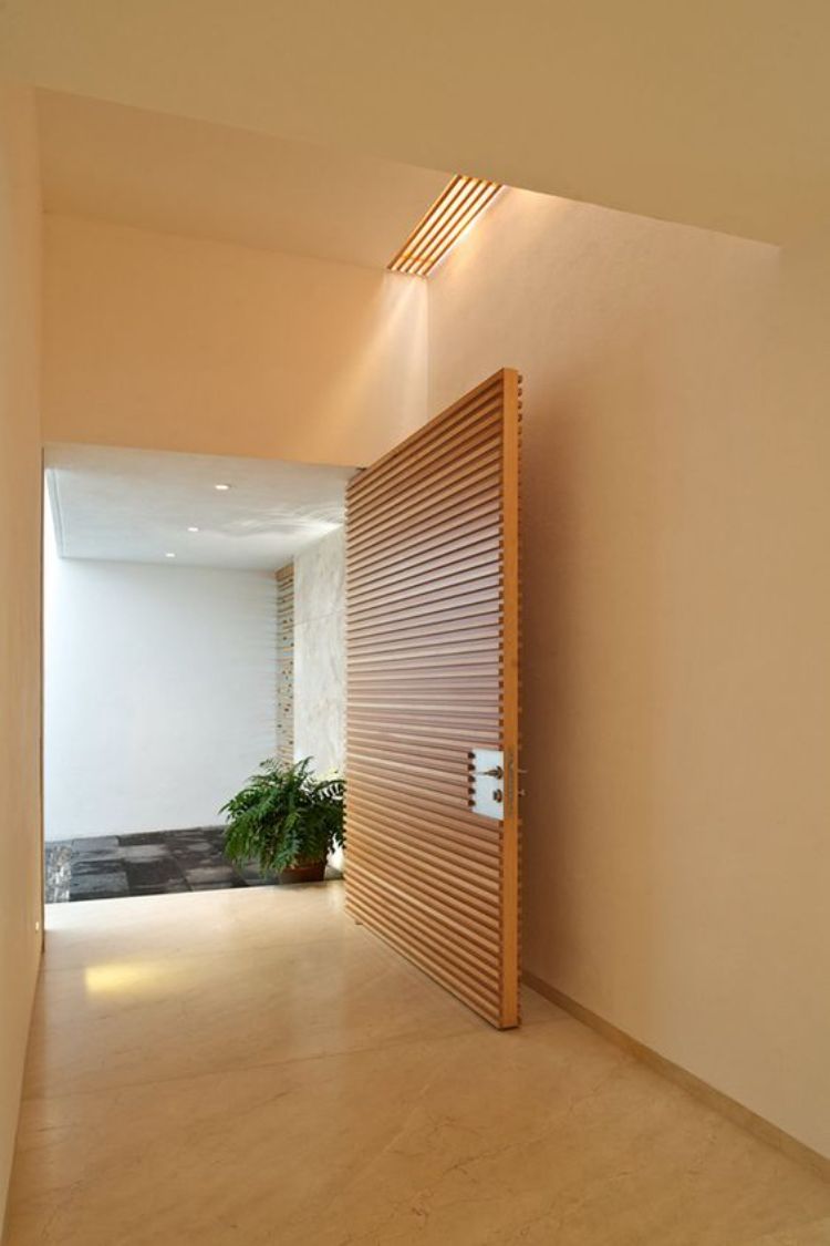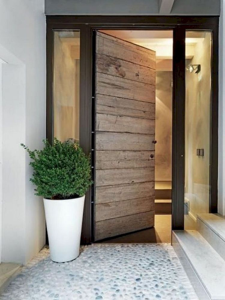 Terkadang beberapa rumah tidak menjadikan pintu masuk sebagai pintu utama. Akan tetapi sebagai akses masuk ke dalam rumah bagi orang-orang tertentu. Agar terlihat lebih menarik dan modern, Anda bisa berikan desain pintu kayu seperti gambar di atas.