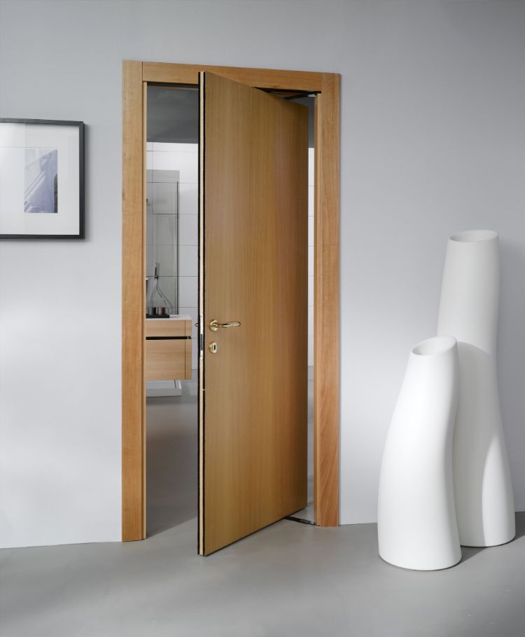 Bagi Anda menyukai desain simple minimalis, maka bisa menggunakan pintu triplek daun ayun tanpa motif. Karena dapat menonjolkan kesan lebih bersih dan klasik, model pintu ini cocok untuk diterapkan di rumah, maupun kantor. Apalagi, warnanya netral, sehingga mudah membaur dengan warna lain disekitarnya.