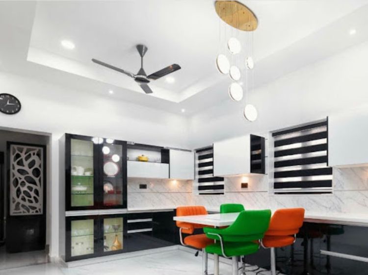Desain ini bisa diterapkan pada ruangan yang mempunyai warna-warna berani. Sebagai sentuhan akhir, tambahkan lampu gantung klasik untuk penerangan.
