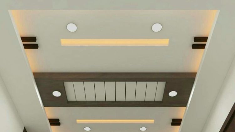 Jika Anda lebih menyukai desain yang simpel, namun tetap terlihat artistik, seharusnya model ini menarik perhatian Anda. Plafon berbentuk persegi panjang ini dihiasi oleh downlight pada setiap sudut. Pilih lampu warna putih untuk membuat ruangan terasa lebih luas.