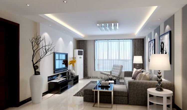 Pemilihan plafon berbahan gypsum selalu menjadi pilihan utama. Apalagi jika pemilik rumah menginginkan warna putih polos. Agar terlihat tetap mewah namun minimalis, Anda bisa membuat aksen berbeda, ditambah dengan penambahan lampu LED seperti pada gambar di atas.