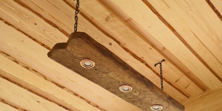 7. Plafon Minimalis dengan Kayu Pedesaan