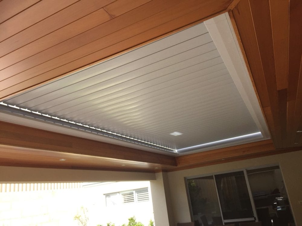 Jika dilihat lebih jelas, plafon ini adalah kombinasi dari plank kayu dan PVC. Di sini terlihat PVC bergaya conwood, kemudian ditimpa dengan rangka kayu yang tak kalah keren.