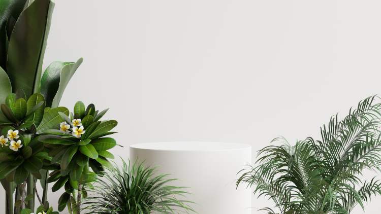 Podium warna putih hampir tidak tampak karena melebur dengan dinding berwarna senada di belakangnya. Sekeliling podium terdapat tanaman hias warna hijau yang mampu menciptakan kesan seperti hutan rimbun.