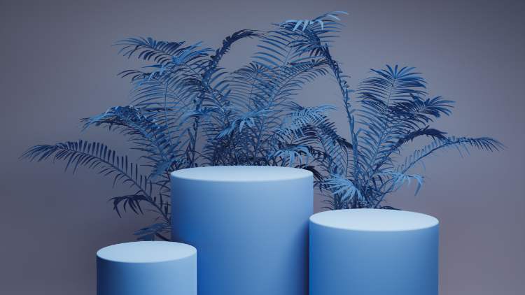Model podium minimalis dengan ciri utama warna biru pastel ini tampak sangat elegan namun sekaligus unik. Tiga buah mimbar berbeda ketinggian dan ukuran dipasang berdekatan seperti tangga bersusun.
