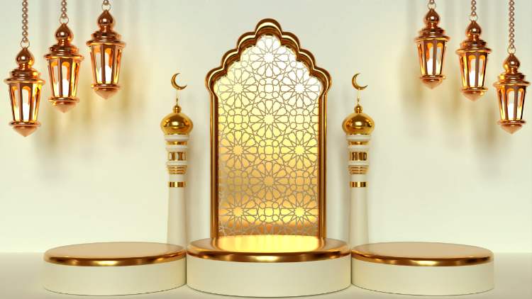 Inspirasi podium untuk khutbah saat Idul Fitri di lingkungan tempat tinggal yang sangat indah dan anti mainstream. Podium dilapisi menggunakan lempengan logam seperti stainless steel berwarna emas.