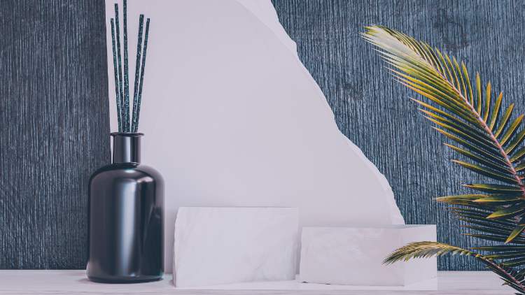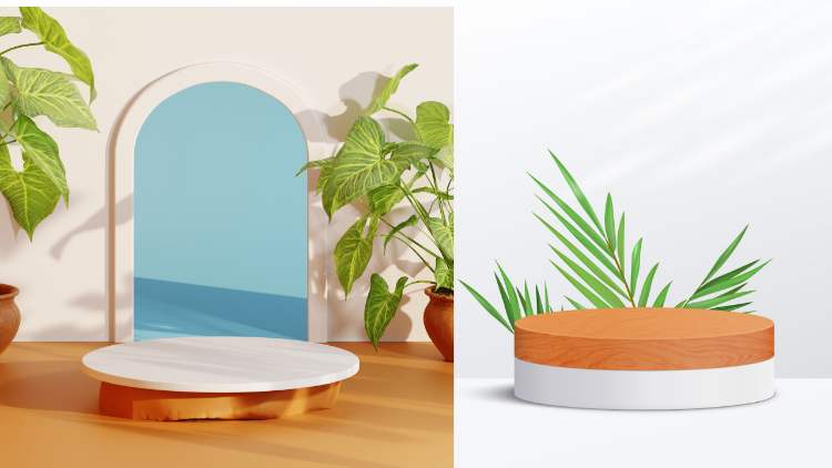 Podium tidak memiliki dinding penutup yang menjadi ciri khas dari podium bergaya minimalis. Di sekitar podium diletakkan pot tanaman hijau seperti daun lidah mertua dan keladi untuk menciptakan nuansa tropis.