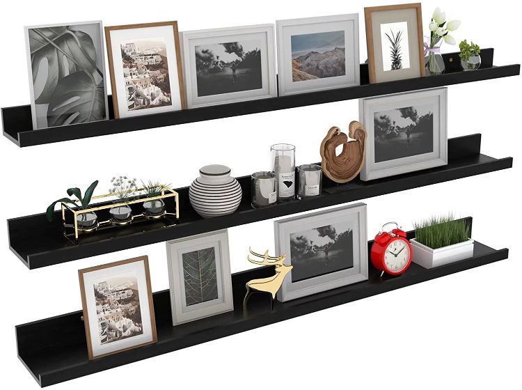 Kelebihan model rak floating adalah bisa menampung barang di atasnya tanpa memakan banyak ruang. Selain itu modelnya juga sangat manis dilihat.