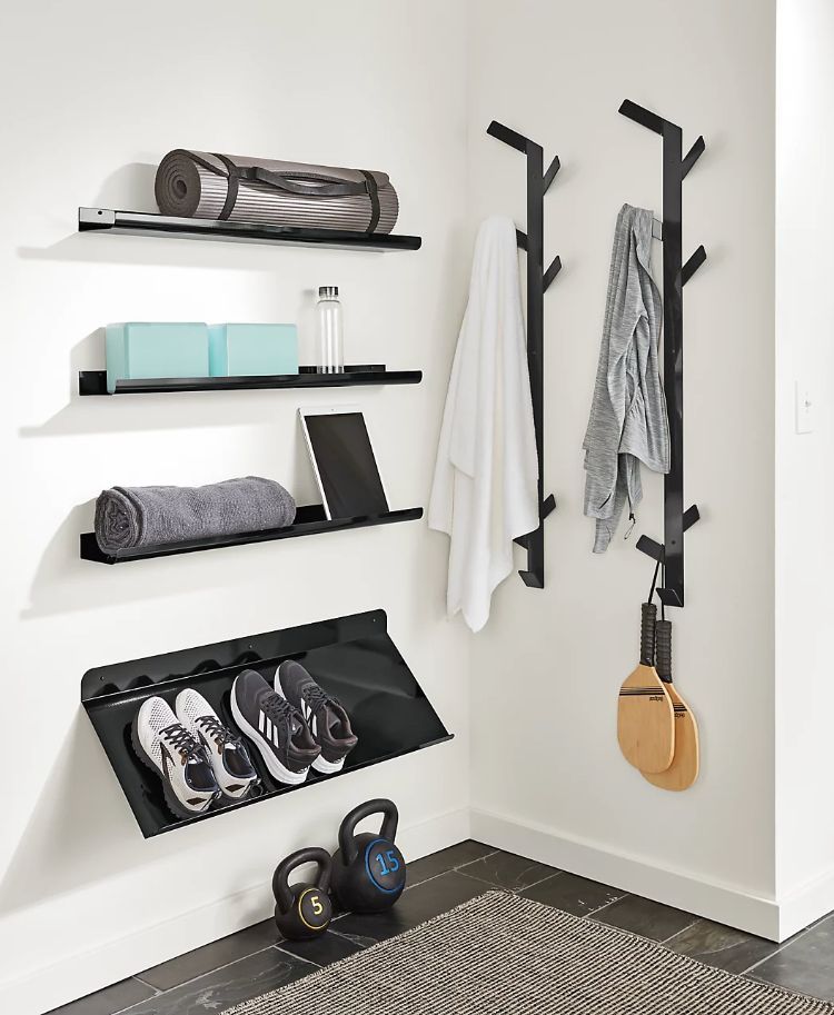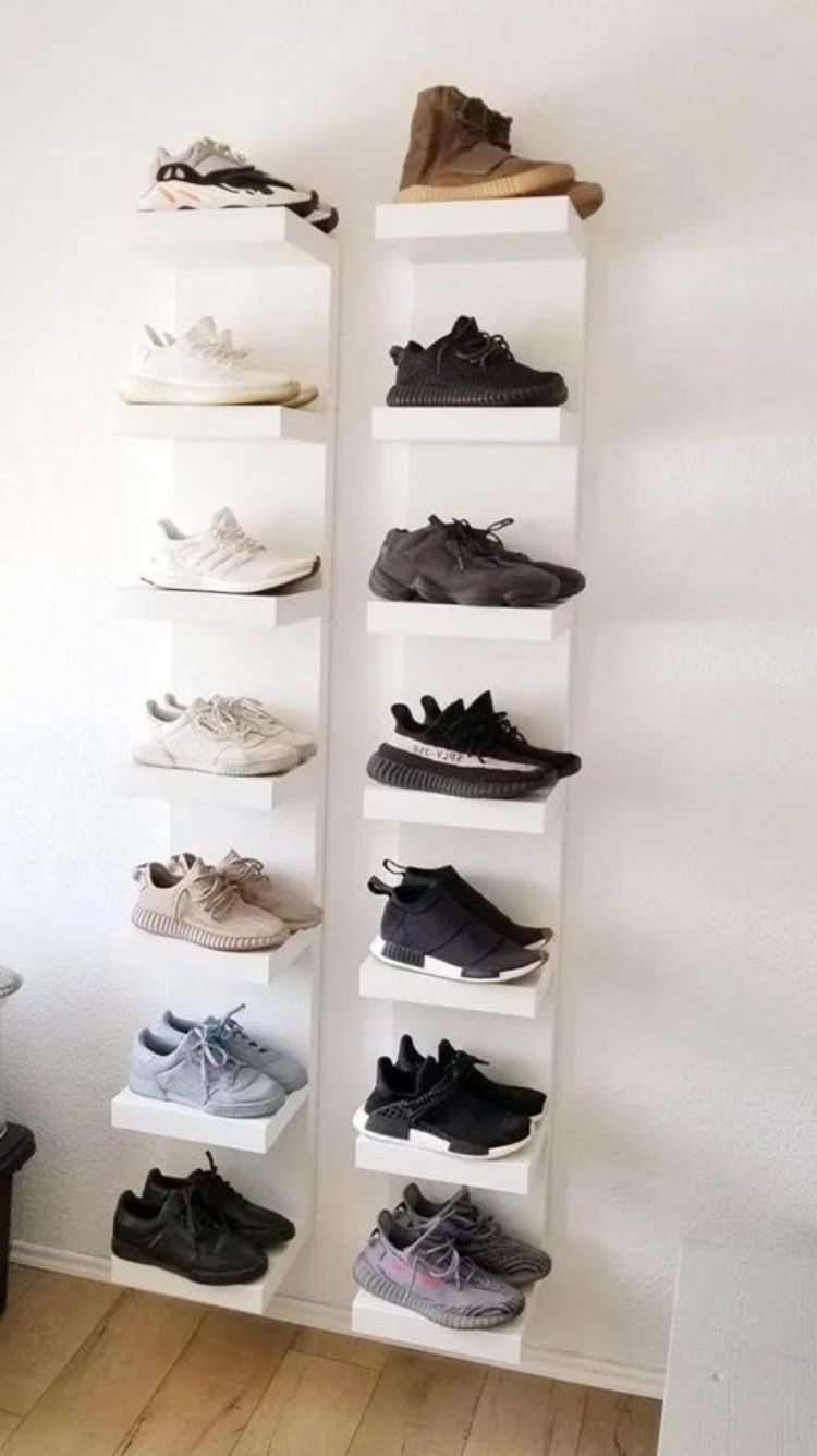 Model rak yang dipasang pada dinding ini menawarkan lebih dari sekadar penyimpanan sepatu. Anda bisa menyimpan perlengkapan olahraga, bahkan perangkat elektronik sekali pun dengan aman.