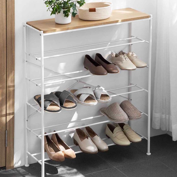 Gunakan rak sepatu susun dengan konsep terbuka ini apabila Anda ingin memamerkan koleksi sepatu Anda. Terdapat area kosong di atas rak yang bisa digunakan untuk meletakkan topi kesukaan Anda.