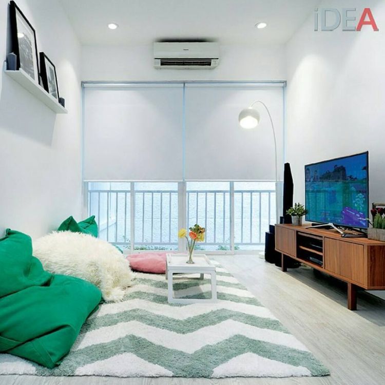Desain ini cocok diterapkan untuk ruangan yang sempit dengan berbagai furniture dan perabotan bergaya Scandinavian. Anda bisa menempatkan soa dan juga karpet dengan warna cerah seperti merah hati. Gunakan juga furniture dengan bermacam warna.