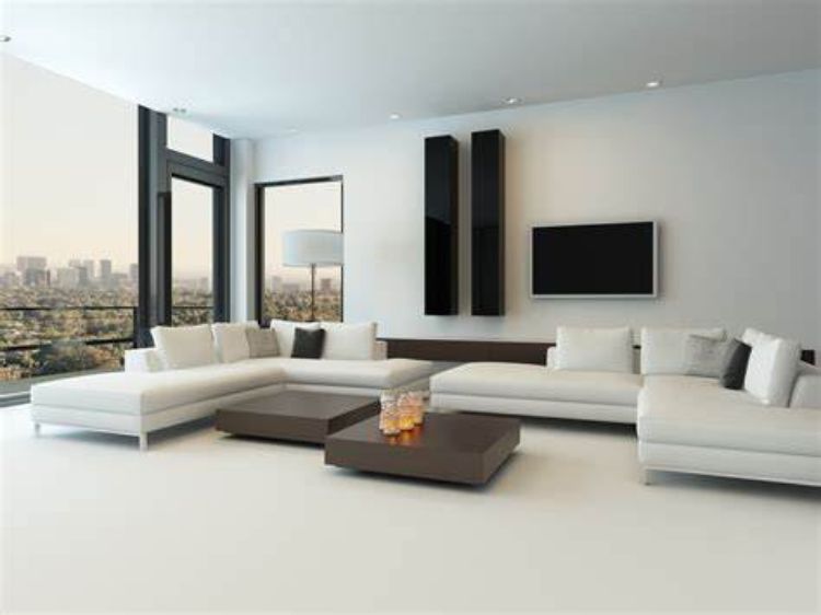 Ciptakan nuansa utama ruangan berwarna terang melalui dinding hingga kain gorden putih. Berikan furniture tambahan berupa TV layar datar yang menempel ke dinding sehingga tampak sangat futuristik.
