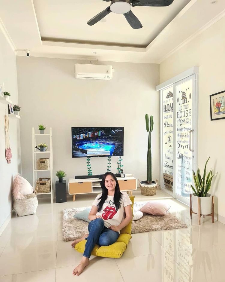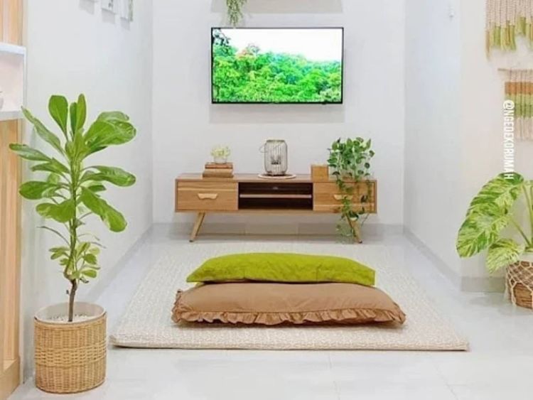 Penggunaan sofa pada desain ruang TV ini dapat diganti dengan karpet atau kasur lantai.