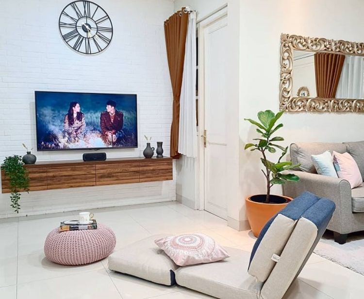 Dekorasi pada ruang keluarga tidak harus menggunakan sofa. Pada dasarnya banyak orang yang memilih menikmati menonton TV dengan sambil rebahan. Oleh karena itu, tanpa sofa pun acara bersantai bersama keluarga tetap akan lebih menyenangkan.