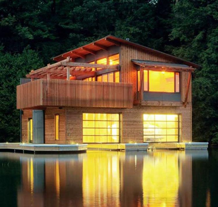 Jika Anda ingin membuat rumah kayu di pedesaan dengan terkesan lebih modern, mungkin bisa menggunakan referensi dari gambar rumah kayu ini. Dengan desain yang seperti ini maka rumah kayu Anda akan terlihat lebih modern dan menarik.