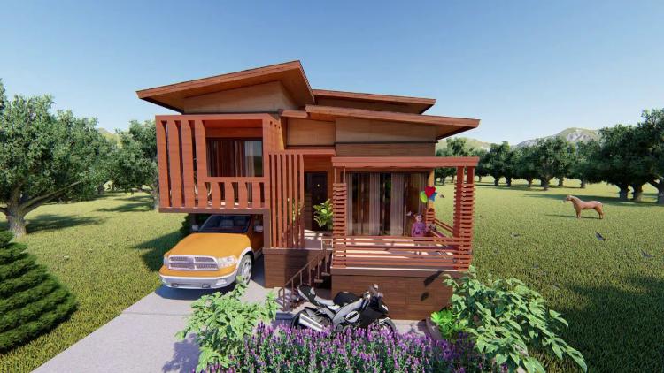Jika ingin membuat rumah kayu dengan dua tingkat dan tidak terlalu besar, mungkin Anda bisa menggunakan model seperti di gambar. Dengan mode tersebut maka rumah akan terlihat lebih modern dari luar meskipun terbuat dari kayu.