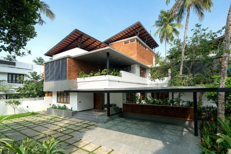 Bentuk rumahnya dibuat seperti kotak bertumpuk tanpa aturan. Namun hal tersebut tidak membuat rumah terlihat berantakan justru membuatnya bernilai seni tinggi.