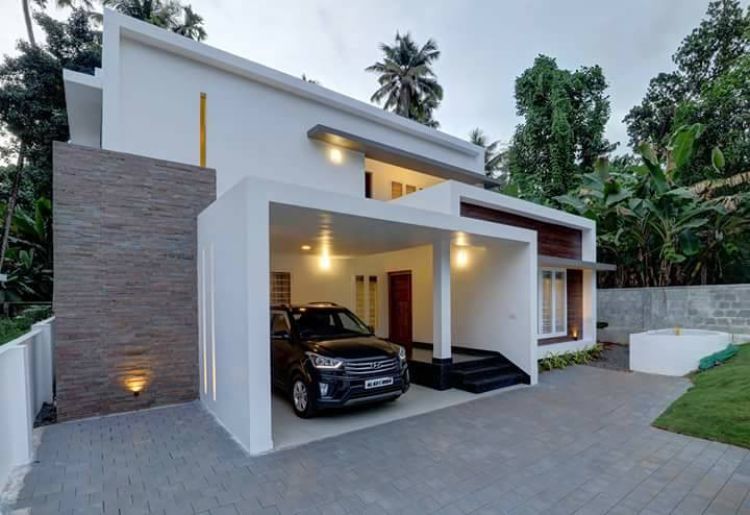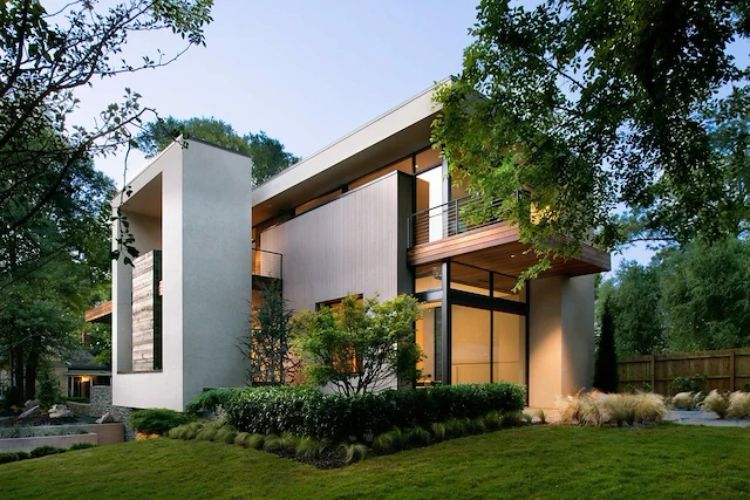 Salah satu ciri khas dari gaya rumah minimalis modern kekiniaan adalah arsitektur luar rumah yang mengadopsi desain geometris. Jika rumah desain lampau menggunakan atap segitiga atau trapesium, maka bentuk rumah mewah minimalis ini lebih mengutamakan desain kotak atau atap mendatar.