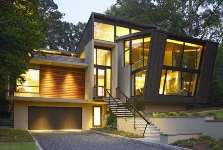 Pernah melihat lukisan geometri bergaya abstrak hasil karya pelukis terkenal? Anda juga bisa membuat rumah minimalis bergaya geometri abstrak seperti rumah berikut. Rumah ini menggunakan dinding kaca di bagian depan untuk pencahayaan maksimal.