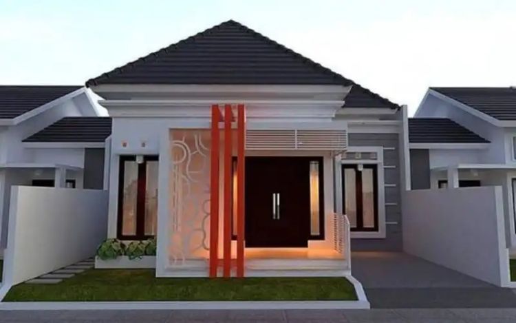 Model rumah minimalis modern type 45 selanjutnya yang bisa menjadi inspirasi untuk Anda yaitu rumah minimalis dengan fasad motif. Untuk memberikan kesan menonjol pada eksterior rumah, Anda bisa menghadirkan aksen garis horizontal warna jingga.