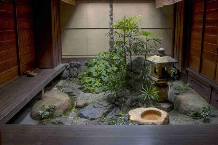 Elegan adalah satu kata yang bisa kita dapatkan saat melihat desain taman satu ini. Taman Jepang minimalis dibangun di atas space yang terbatas di dalam rumah.