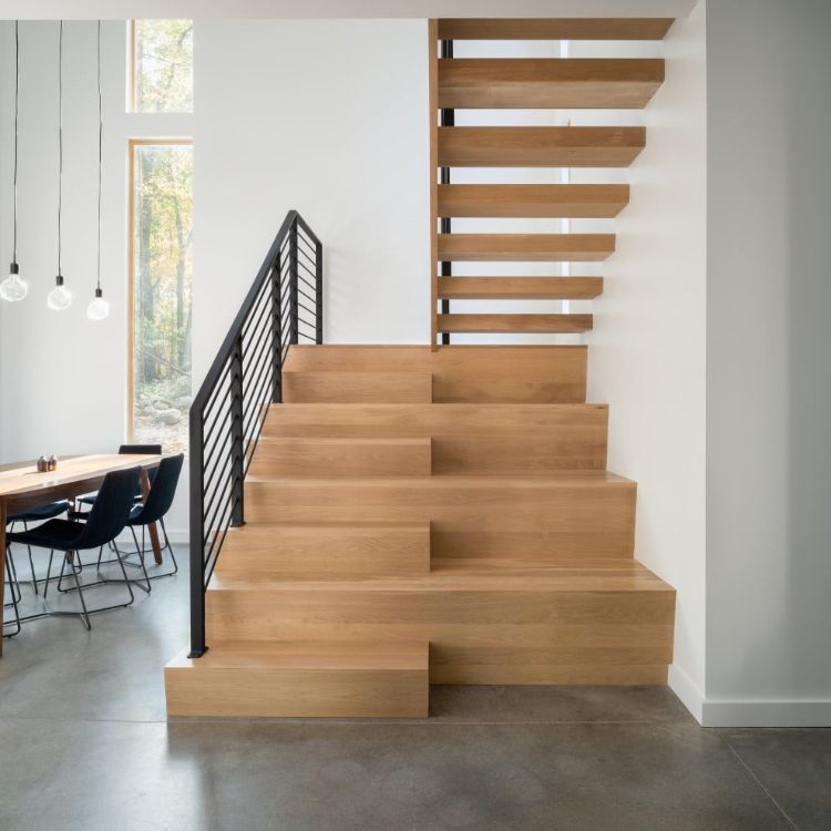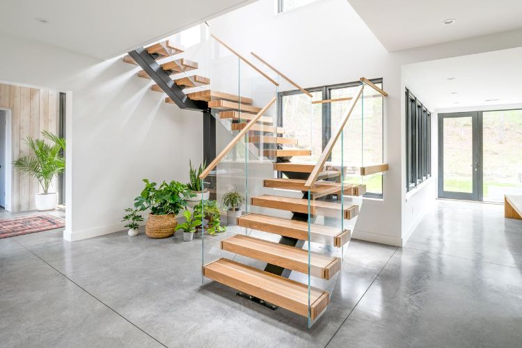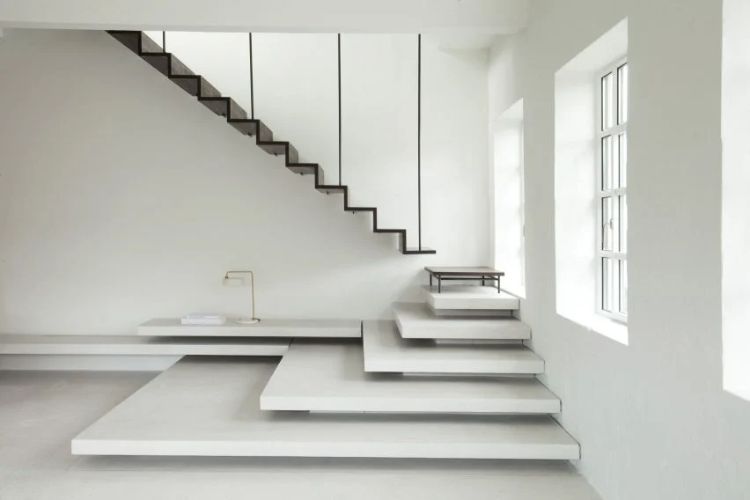 Model tangga berikutnya sangat cocok dibuat pada hunian modern yang memiliki langit-langit sangat tinggi. Desain tangga satu ini mampu membuat tampilan ruangan tampak lebih lega dengan langit-langit yang tinggi.