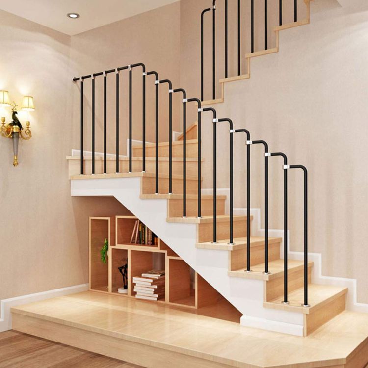 Untuk keamanan, tangga rumah minimalis ini biasanya dilengkapi oleh pegangan tangga atau railing. Railing tangga minimalis dibuat dari berbagai pilihan material baik kayu, logam besi, kawat hingga tali. Model tangga dan pagarnya harus disesuaikan dengan tema ruangan tempat tangga tersebut dibang