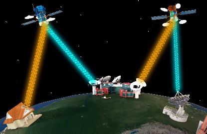 Bagian terpenting dari satelit untuk keperluan komunikasi adalah “Transponder”. Transponder menerima sinyal dari stasiun pangkalan pada satu frekuensi, memperkuat daya sinyal, menghilangkan noise, dan mengirimkan kembali ke bumi pada frekuensi yang berbeda. Frekuensi Uplink selalu lebih tinggi daripada Frekuensi Downlink, terlihat antena dengan pita frekuensi yang berbeda, pada umumnya Pita Frekuensi ‘Ku’ digunakan untuk ‘D2H’. Sinyal Frekuensi Ku ini memiliki daya yang memungkinkan pemakaian antena penerima berukuran lebih kecil, di masa lalu selalu sinyal Pita Frekuensi C yang memiliki energi lebih rendahlah yang digunakan untuk komunikasi televisi dan itulah sebab penggunaan antena besar pada masa itu. Namun sinyal Pita Frekuensi Ku dipengaruhi oleh hujan, sehingga para ilmuwan harus mengatasi masalah ini dengan peningkatan teknologi satelit.