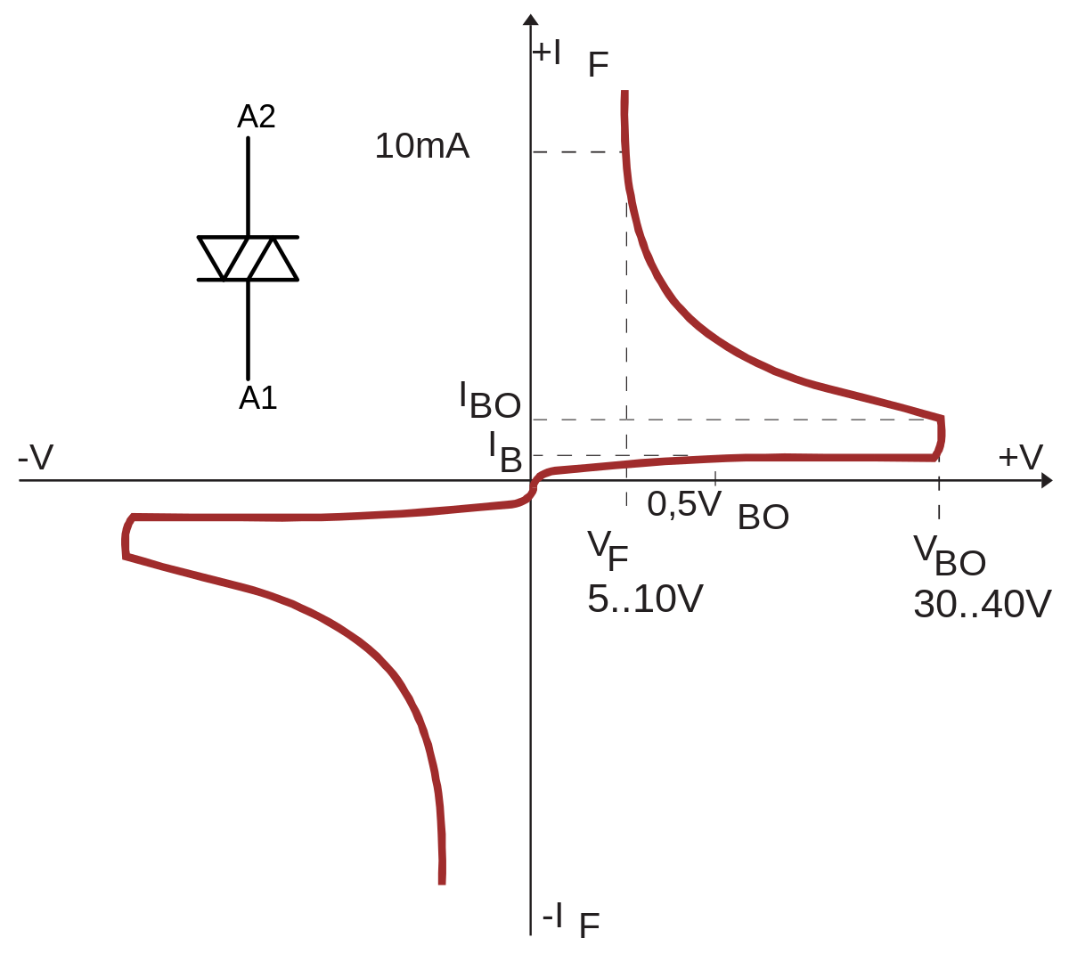 - Arus Nol: kondisi ON akan terus bertahan hingga arus listriknya turun di bawah ambang atau mendekati nol. Setelah itu komponen ini akan secara otomatis kembali ke kondisi OFF.