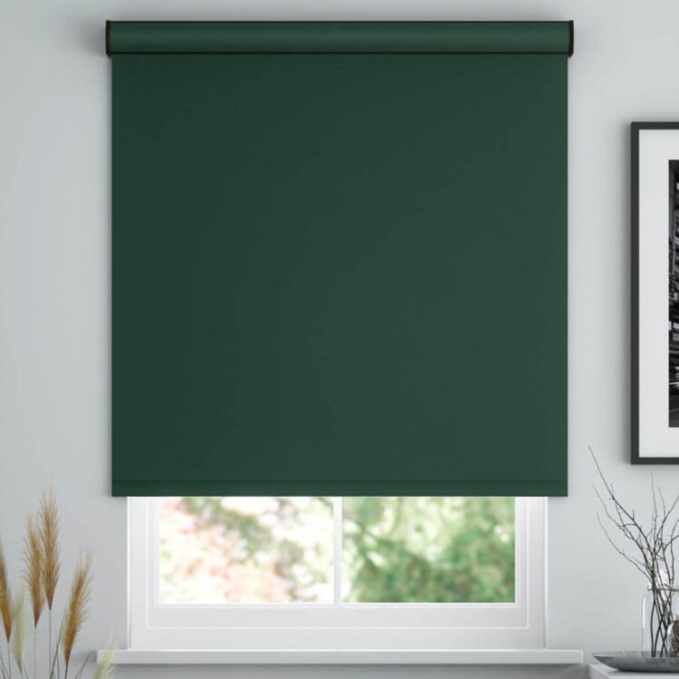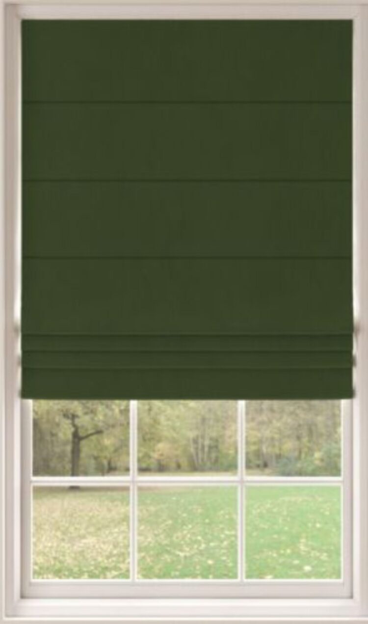 Tirai gulung berwarna hijau seperti pada gambar tersebut sangat cocok digunakan untuk rumah. Bahan kain yang digunakan pada tirai ini cenderung tebal sehingga dapat menghalangi cahaya masuk.