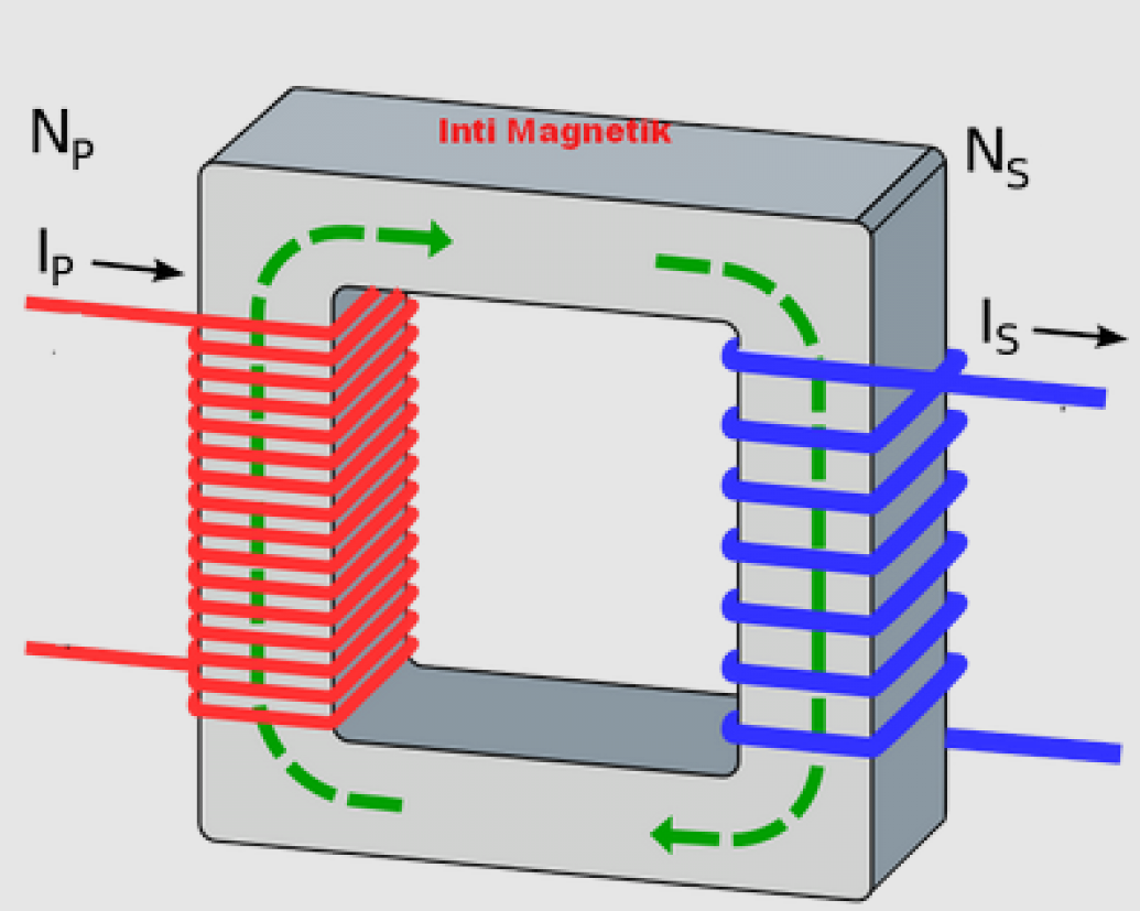Arus bolak-balik pada lilitan primer menginduksi medan magnet bergantian dalam inti, yang kemudian menginduksi arus pada lilitan sekunder.