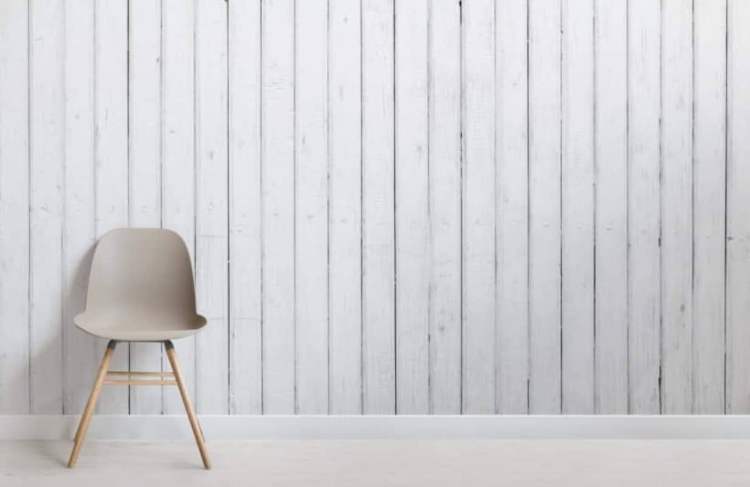 Seperti yang diketahui, menggunakan dinding kayu membutuhkan perawatan yang cukup rumit dan biaya yang tidak sedikit. Agar bisa tetap memiliki dinding kayu yang natural, Anda bisa menggunakan wallpaper dengan motif papan kayu putih. Tentunya lebih praktis dan murah.