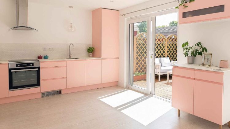 6. Warna Cat Dapur Minimalis Merah Muda dan Putih