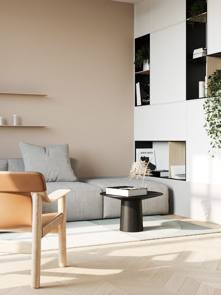 Warna-warna lembut dan netral seperti clay pada hunian ini akan membuat suasana di dalam rumah semakin hangat. Meskipun luas bangunan tidak seberapa, namun pemilihan warna cat yang pas akan membuat suasana di rumah terasa lebih lega dan nyaman.